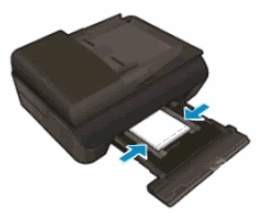 Load the short edge of the photo paper into the tray. If the paper has a perforated tab, load the paper so the tab faces up or towards you to prevent printing on it.