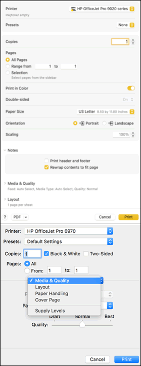 Paper type (plain, specialty): Select the paper type in Media & Quality to ensure the printer properly applies the ink to the paper you loaded in the printer.